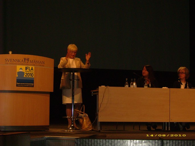 Le samedi 14 août s’est tenue l’intéressante session 133 organisée par les sections « Alphabétisation et Lecture » et « Bibliothèques pour populations multiculturelles » et dont le thème était : Les bibliothèques soutiennent la lecture dans une société multiculturelle, multilingue. J’ai été particulièrement intéressé par la communication faite par Maija Berndtson, Directrice de Helsinki City Library en Finlande, qui a exposé l’expérience de sa propre bibliothèque (la Bibliothèque de la Ville d’Helsinki) et son statut multilinguistique depuis 1995. Cette structure qui est en fait un réseau citadin de 35 bibliothèques, a la caractéristique essentielle de donner à des utilisateurs d’origine étrangère la possibilité d’accéder à un fonds documentaire dans leur langue maternelle (des livres disponibles en 70 langues). Cela permet à ces utilisateurs de préserver une certaine connaissance de leur langue maternelle en plus du finnois. Cette bibliothèque fait aussi office de lien vers le pays d’origine, on peut ainsi y lire un journal de son pays et suivre ce qui s’y passe sur Internet, avec la possibilité également d’y envoyer gratuitement des e-mails à domicile. Nous voici donc devant une application concrète de l’interculturalisme en plus du multiculturalisme. L’autre intérêt de cette communication est l’apologie faite à notre profession de bibliothécaire et qui se résume à cette petite réflexion de l’intervenante : « Knowledge is power, we work with knowledge, we are powerful » tout un symbole. La communication originale est accessible en cliquant sur ce lien, en attendant la traduction que je promets d’ici peu.
