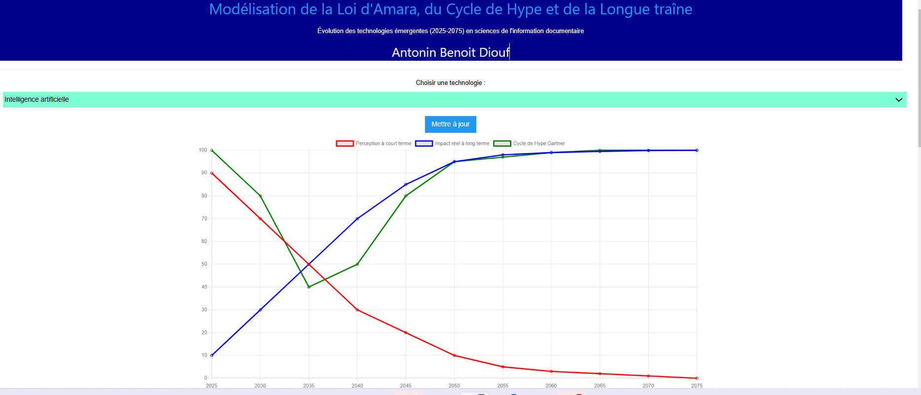 Dans ce contexte, Loi d’Amara et Cycle du hype interagissent de manière critique. Tandis que le Hype explique les réactions sociétales et industrielles à court et moyen terme, la loi d’Amara quant à elle fournit une grille de lecture de long aloi. La surestimation des avancées immédiates place souvent les innovations dans un Pic des attentes excessives, où l’on projette des transformations radicales qui ne se matérialisent pas immédiatement. Vient ensuite un creux de la désillusion, où l’on minimise les potentialités réelles de la technologie après les premières limites constatées, mais sur le long terme, ce sont les évolutions structurelles et systémiques qui s’imposent, redessinant en profondeur l’écosystème documentaire.